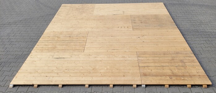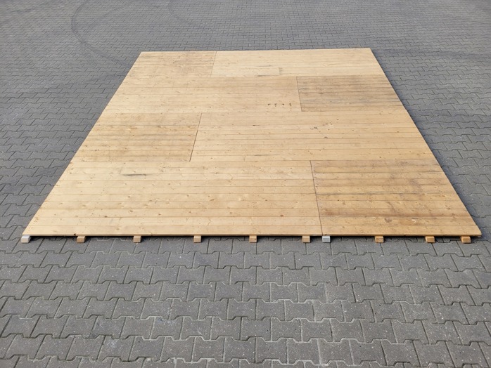Er zijn 2 verschillende maten vloerplaten. Het halve vloerdeel is 1,25x 1 meter en het hele vloerdeel 2,5x1 meter. De vloer kan in verband worden gelegd zodat hij stevig is.