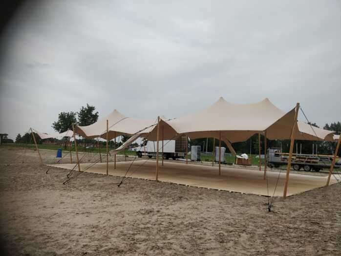 Deze stretchtent 10×15 meter is ideaal voor grote evenementen, festivals en bruiloften. Het rekbare tentdoek kan flexibel worden geplaatst, terwijl het robuuste frame stabiliteit biedt. Perfect voor evenementen waar zowel stijl als bescherming tegen zon en regen belangrijk zijn.
